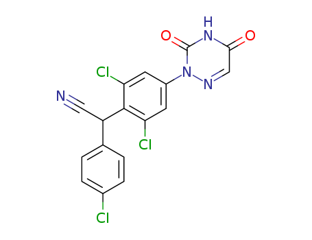 P 64433;2,6-Dichloro-.alpha.-(4-chlorophenyl)-4-(4,5-dihydro-3,5-dioxo-1,2,4-triazin-2(3H)- yl)benzeneacetonitrile;Benzeneacetonitrile, 2,6-dichloro-alpha-(4-chlorophenyl)-4-(4,5-dihydro-3,5-dioxo-1,2,4-triazin-2(3H)-yl)-;Benzeneacetonitrile,2,6-dichloro-R-(4-chlorophenyl)- 4-(4,5-dihydro-3,5-dioxo-1,2,4- triazin-2(3H)-yl)-;2-(4-chlorophenyl)-2-[2,6-dichloro-3-(3,5-dioxo-1,2,4-triazin-2-yl)phenyl]acetonitrile;2-(4-chlorophenyl)-2-[2,6-dichloro-4-(3,5-dioxo-1,2,4-triazin-2-yl)phenyl]acetonitrile;Diclaznril; |